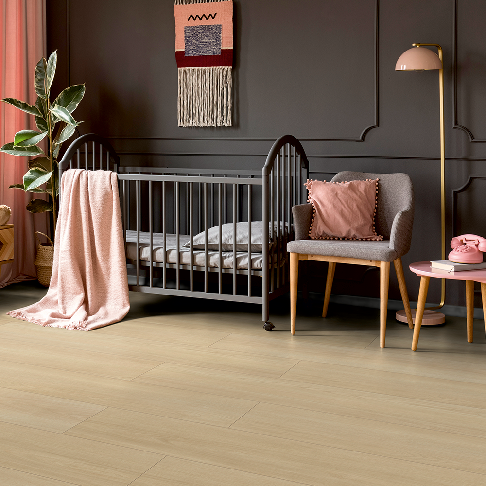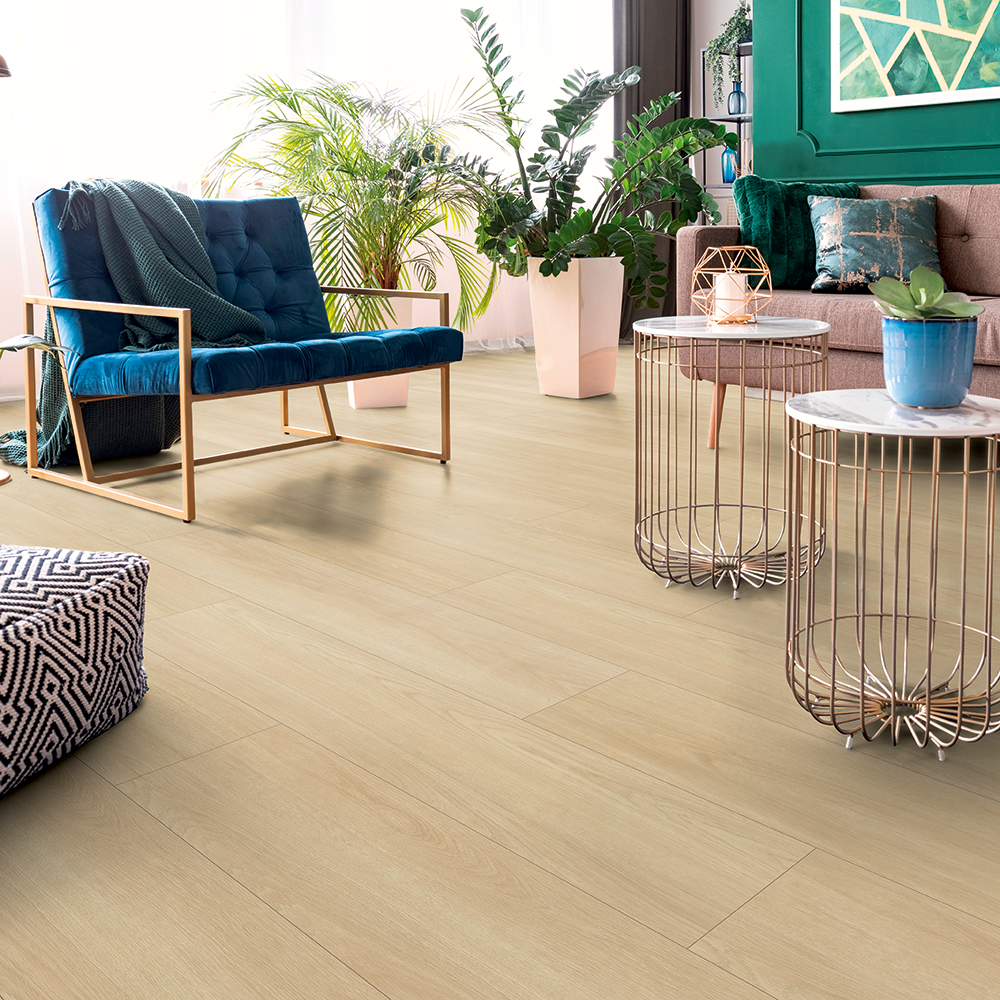 Nordic Floor Living White Oak är ett laminatplankgolv i elegant design och med extra breda plank. Golvet är slitstarkt och har ett naturligt utseende och struktur som ger en känsla av äkta trä. Fasningen hela vägen runt framhäver den naturliga plank looken. Med G5 klicksystem så är golvet enkelt och snabbt att lägga.